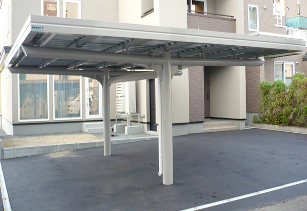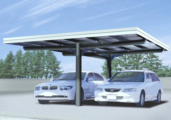 2台の愛車が仲良く横に並ぶ。柱は中央に2本、屋根は左右に。ショーワの技術が夢を実現しました。