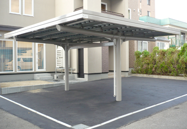 カーポート本体はお住まいに合わせ標準8色からお選び頂き、化粧カバー・母屋・折板はZAM本来の気品あるシルバーをそのまま採用しました。