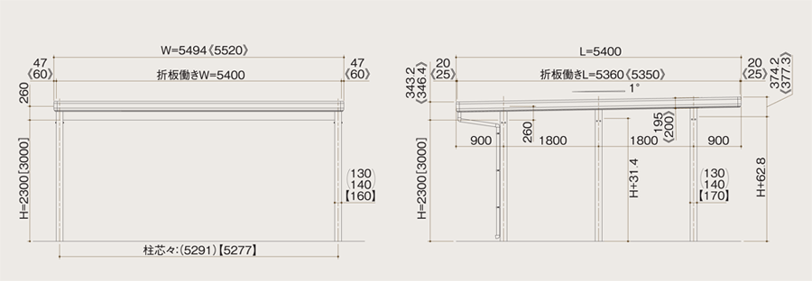 6本柱タイプ2台用 BVF-5454 積雪1.5m