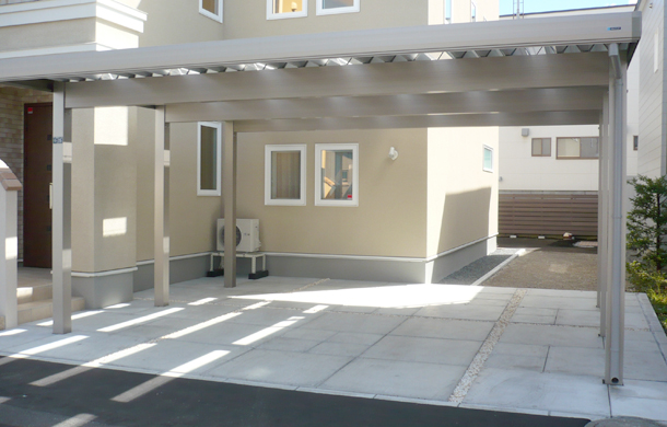 HOME > 施工事例 > ガレージ・カーポート >BXポートアルミ製カーポート2台用【文化シャッター】
