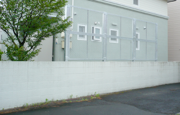雪止めフェンス:屋根からの落雪が隣地へ越境するのを防ぐ雪止めフェンスを設置しました。表面は錆に強い亜鉛メッキ仕上げで、耐久性に優れています。