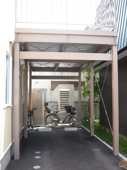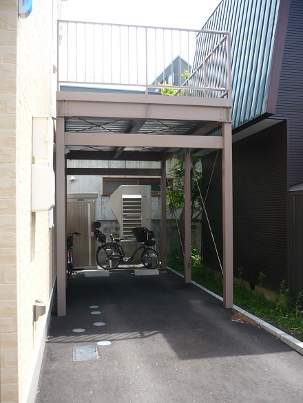 鉄骨カーポートデッキ、植栽カーポート上部をデッキとして使用することにより敷地内の空中の空間まで有効活用しました。 お天気の良い日は洗濯物を干したり、夏はバーベキュー等、カーポートに手摺を設置することで生活の幅もぐんと広がります。 サイズやカラー等、お客様のお家に合ったカーポートデッキをご提案させて頂きますので、 お気軽にお問い合わせください。