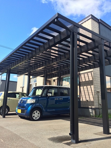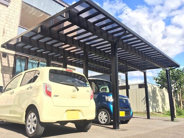 カーポート、塀 カーポートは、LIXILの【ソルディポート】を設置。 家の窓近くに設置しても、特殊な屋根で家の中にも日の光が入るようにしました。 塀はお家の明るい雰囲気に合わせつつ、シックな色で施工いたしました。